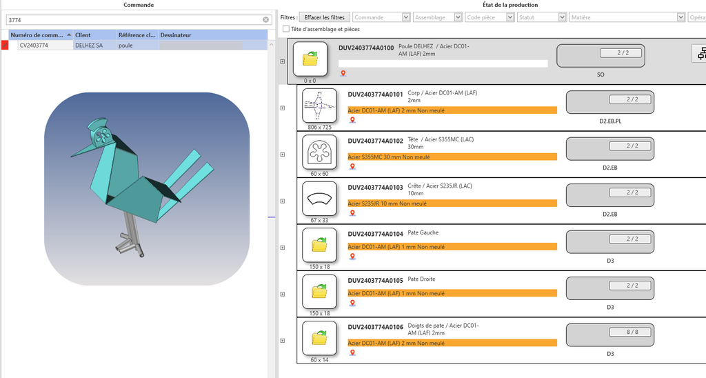 Suivi précis de l’état d’avancement des commandes